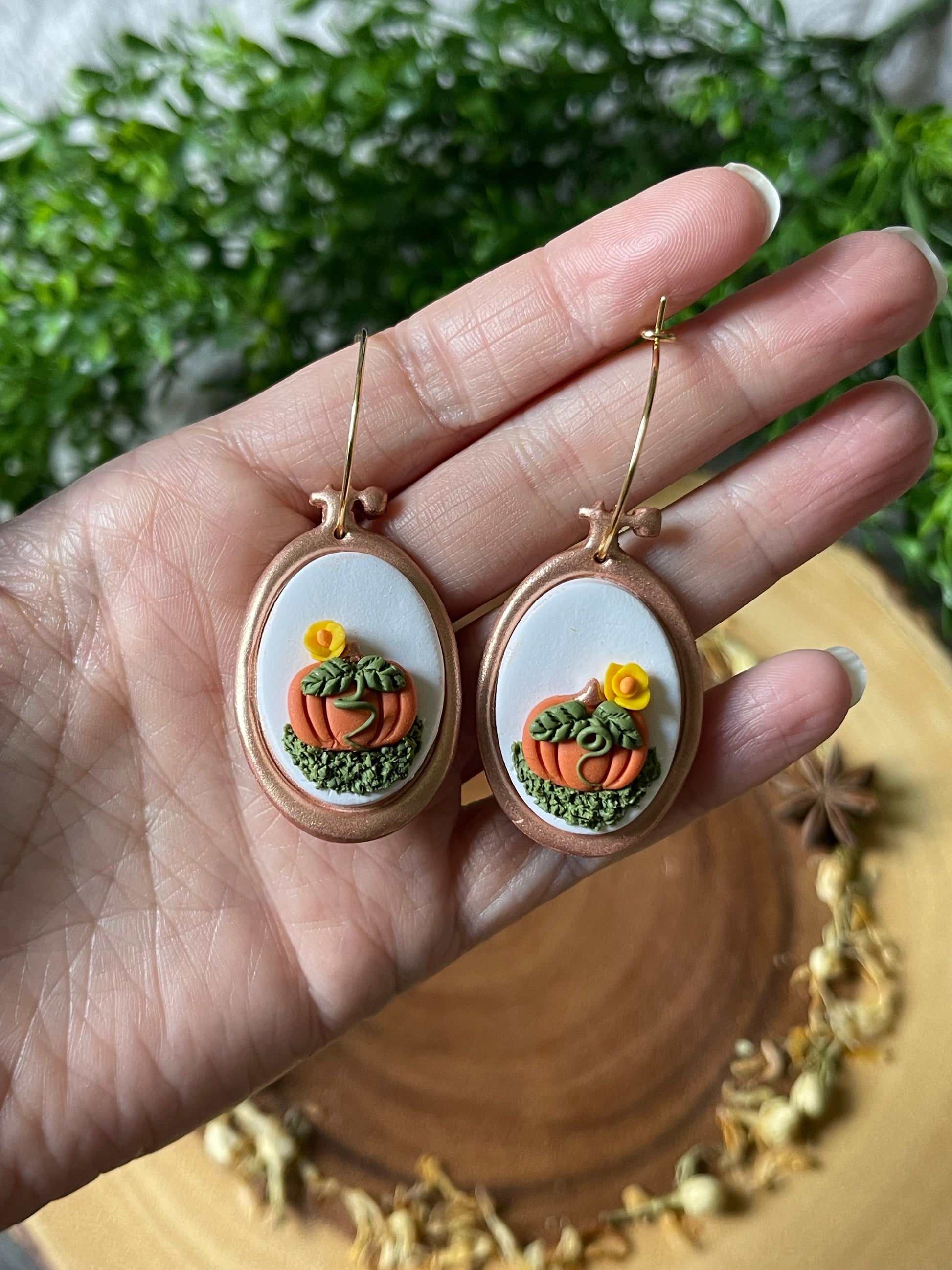 Pumpkin Embroidery Hoop Earrings